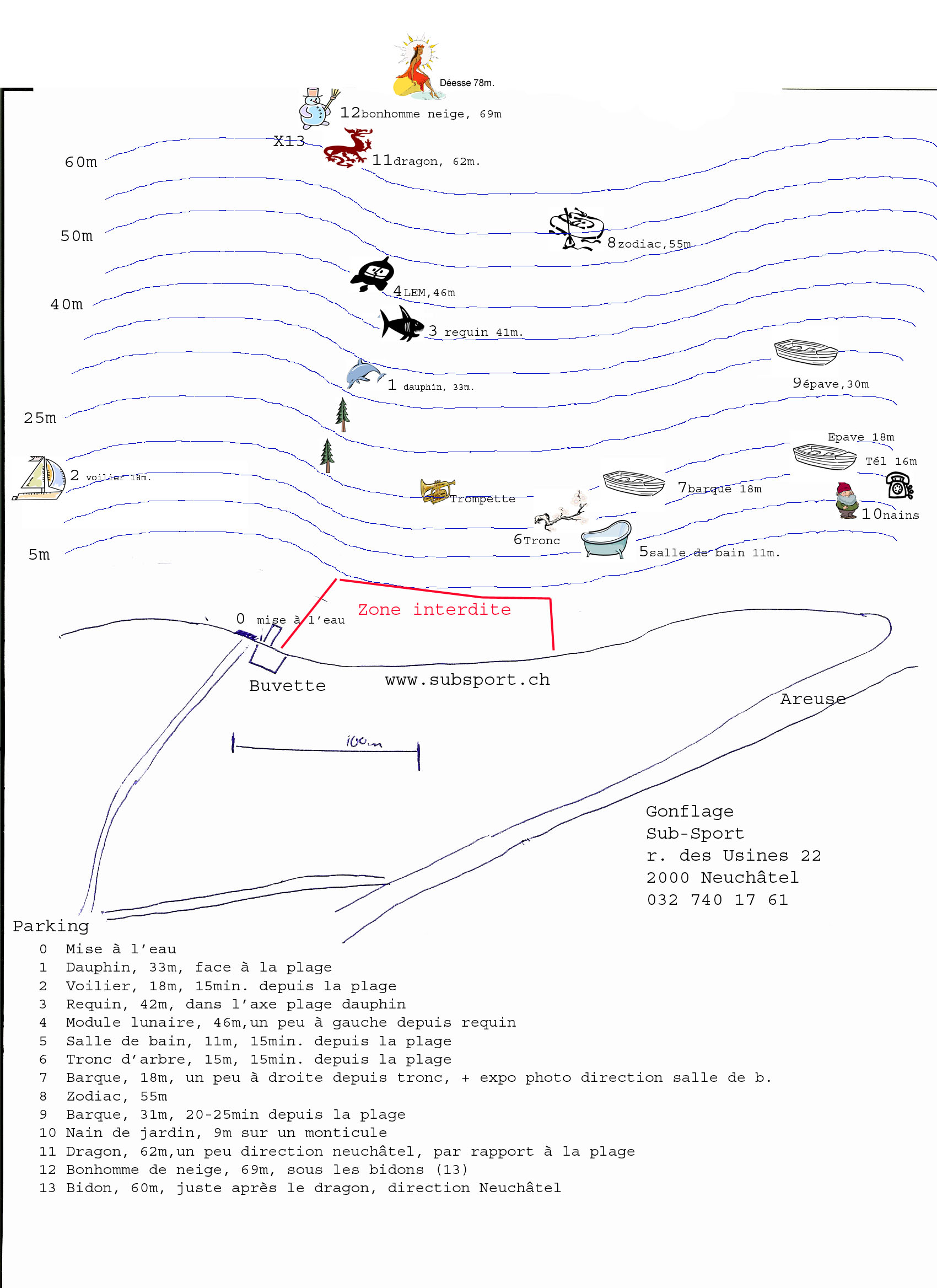 Cette fosse permet des plongée en eau chaude (29°) dans les espaces 0-6 m et 0-20m